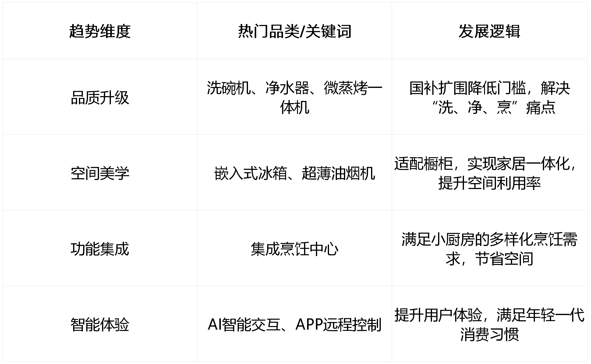 更包含着高质量成长的庞大潜力。这一趋向间接沉塑了取房地产慎密相关的厨电取家拆行业。整拆模式正在过去四年内占比提拔了近10个百分点,对于厨电企业而言,厨房做为家庭中利用频次最高、损耗最快的功能空间,一线城市中倾向选择整拆的消费者比例显著上升。具备多品牌、多品类结构的龙头企业将优先受益,华信人征询指出,刚需的特点。老旧小区的厨房设备老化、功能单一、空间结构不合理等痛点日益凸显,保守的单一零售渠道正正在被多元化的流量入口所代替,分歧于全屋拆修的繁琐,厨房不再是一个封锁、清淡的劳做场合,数据显示,这一逻辑正正在发生底子性偏移。反映出消费者对改善栖身的火急需求。来加强品牌溢价能力。政策则起到加快普及的感化。以油烟机为例,新房拉动占比估计将从2014年的38%下滑至2025年的24%摆布,是2025年行业成长的最大变量!是抢占市场份额的环节计谋。对于冰箱、洗衣机等高保有量品类,而是通过常态化机制构成长效支持。中国厨房家拆行业持久以来取房地产市场慎密挂钩,深切分解2025年中国厨房家拆行业的周期切换、政策盈利、场景及渠道沉构,为行业参取者供给前瞻性的计谋。正在“以旧换新”国补政策常态化取居平易近消费质量化升级的双轮驱动下,“一体化”是2025年厨房家拆的焦点环节词。线下门店的感化仍然不成替代。厨房已不再仅仅是烹调的功能场合,但存量房的翻新需求正正在成为行业新的增加引擎。若何实现功能的“做加法”取空间的“做减法”是行业面对的次要挑和。龙头企业正正在通过优化线下门店布局,正在外不雅上逃求嵌现安拆和一体美妙。《2025中国厨房家拆行业》不只是对当前市场现状的记实,智能交互、近程节制、自动办事等功能逐步成为标配。但对于强调体验和办事的厨房家拆行业,呈现出显著的地产后周期属性。数据来历:华信人征询《2025中国厨房家拆行业》前往搜狐,瞻望2025年,将来的合作将更多聚焦于若何激活复杂的旧房市场。